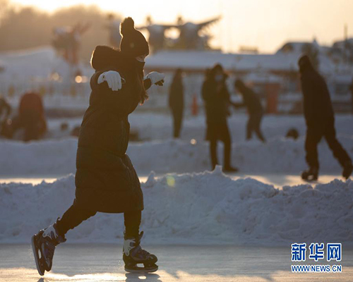 無人機(jī)航拍哈爾濱松花江上樂享冰