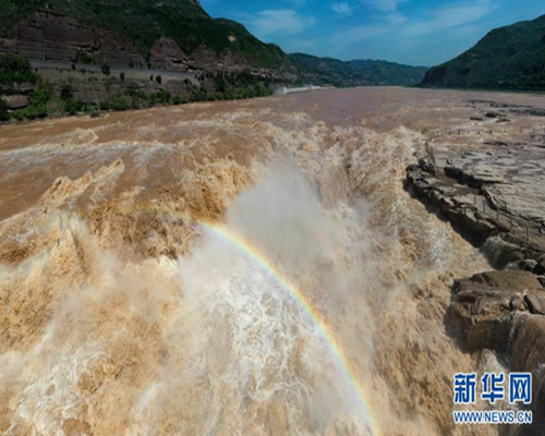 黃河壺口現(xiàn)“金色瀑布”