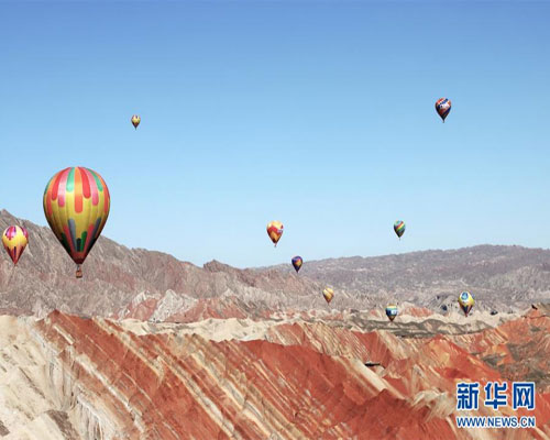 甘肅張掖:七彩丹霞升起熱氣球